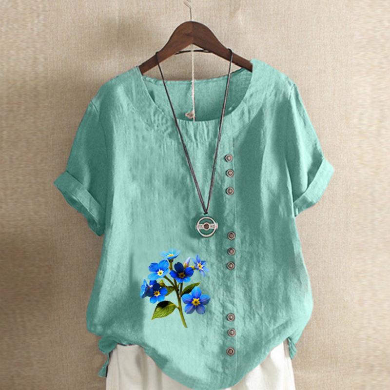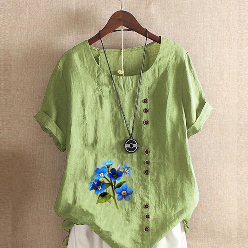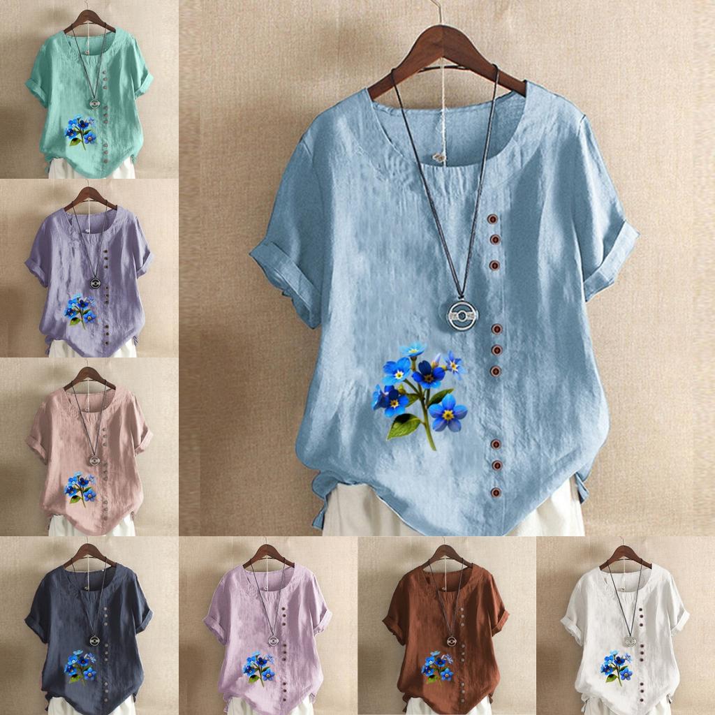 Женская модная футболка с коротким рукавом с цветочным принтом, свободная хлопковая рубашка, повседневная свободная летняя блузка, топы больших размеров