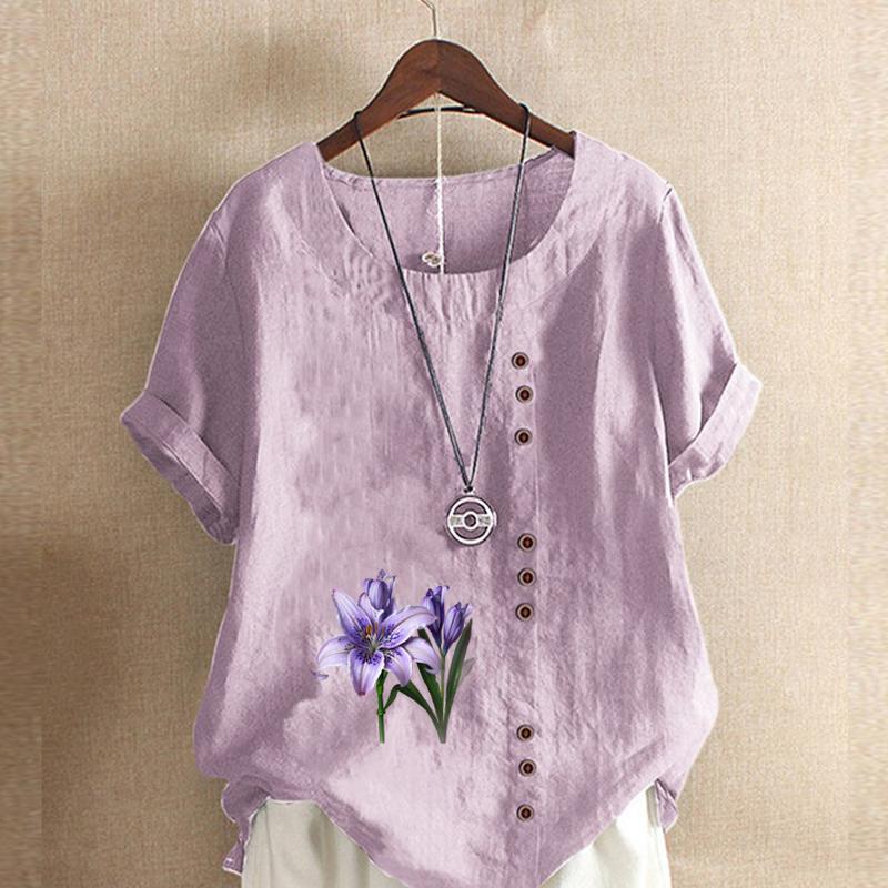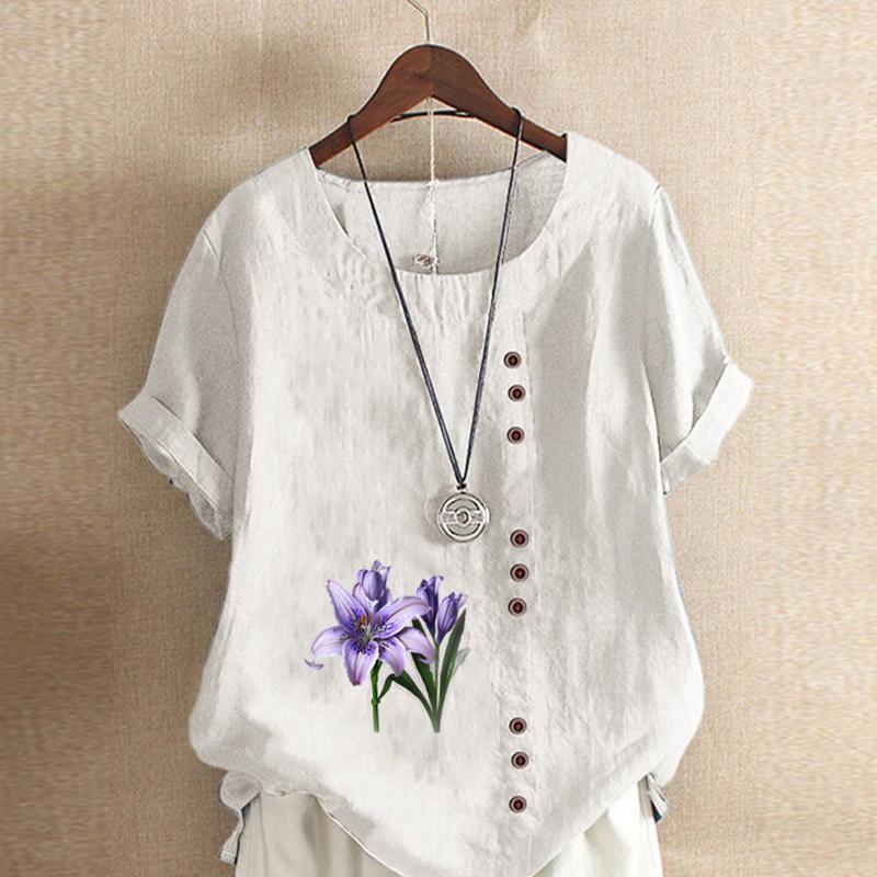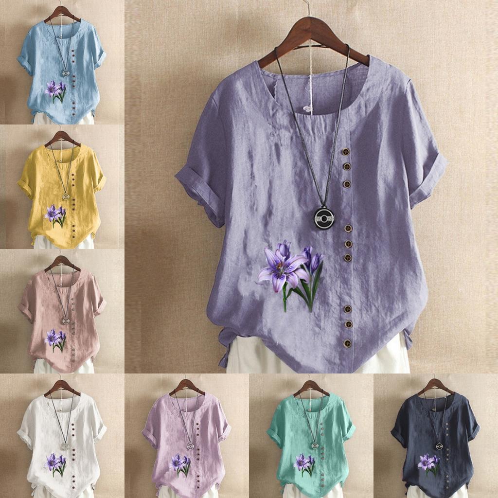 Женская модная футболка с коротким рукавом с цветочным принтом, свободная хлопковая рубашка, повседневная свободная летняя блузка, топы больших размеров
