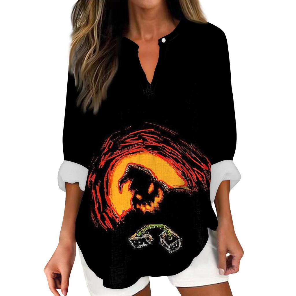 Женские модные повседневные женские топы с v-образным вырезом и длинным рукавом с принтом на Хэллоуин