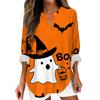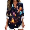 Женские модные повседневные женские топы с v-образным вырезом и длинным рукавом с принтом на Хэллоуин