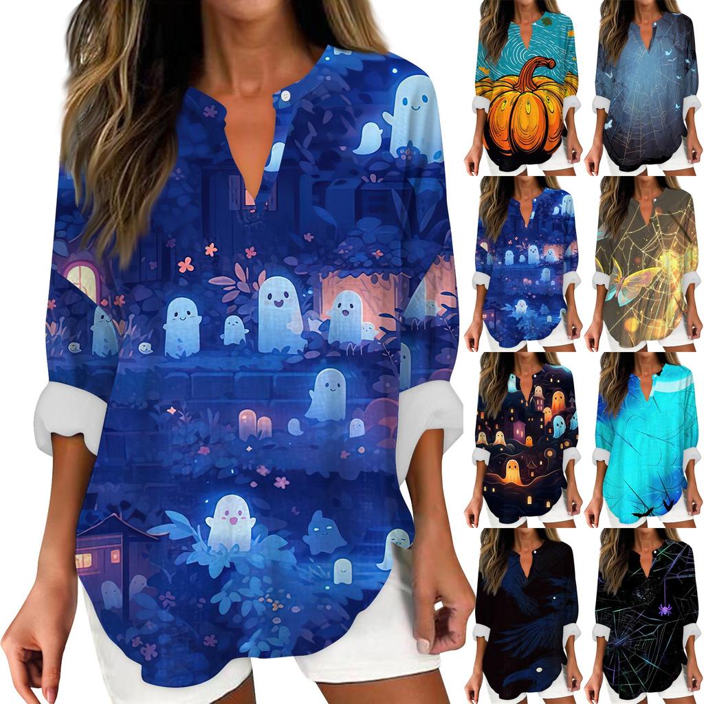 Женские модные повседневные женские топы с v-образным вырезом и длинным рукавом с принтом на Хэллоуин — купить товар онлайн с бесплатной доставкой до всему миру!