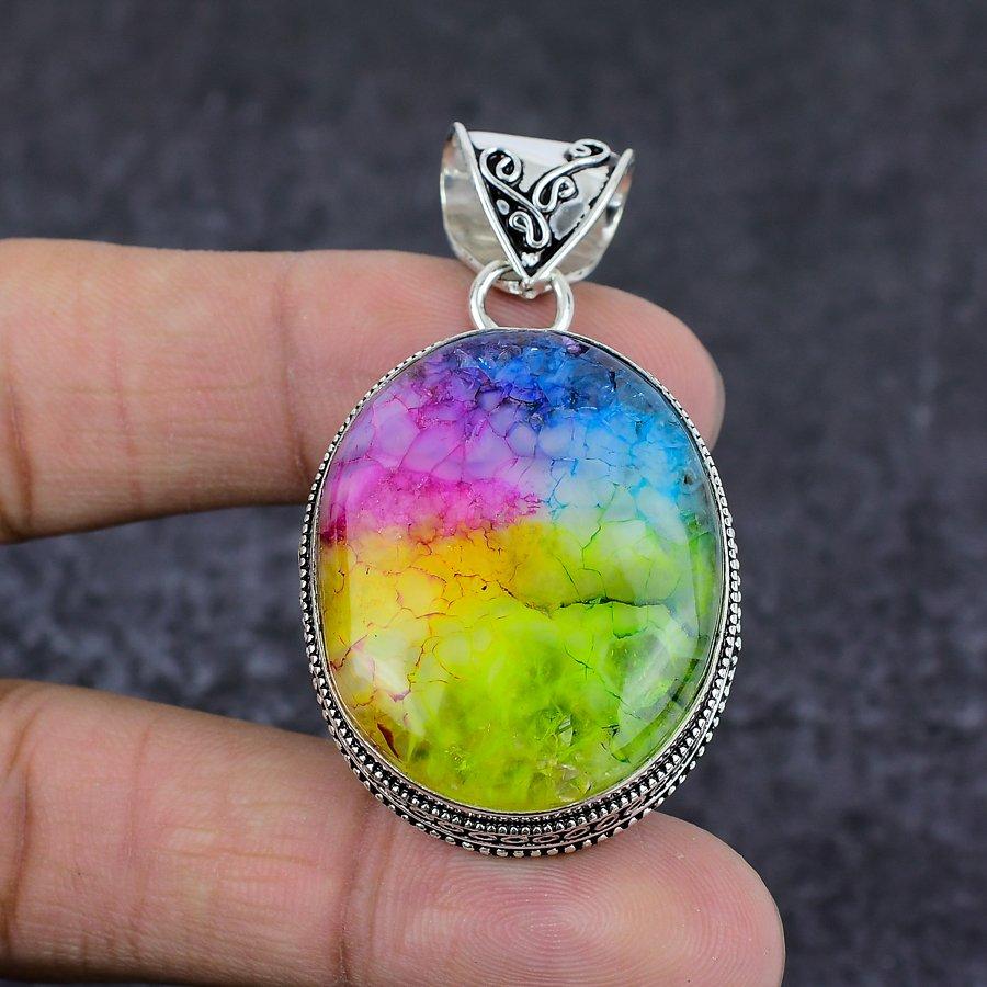 Подвеска ручной работы из стерлингового серебра 925 пробы с радужным солнечным кварцем 2,17 дюйма