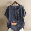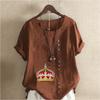 Женская модная футболка с круглым вырезом и коротким рукавом с принтом «Корона», повседневная рубашка из хлопка и льна с рисунком, свободная летняя блузка для отдыха, топы