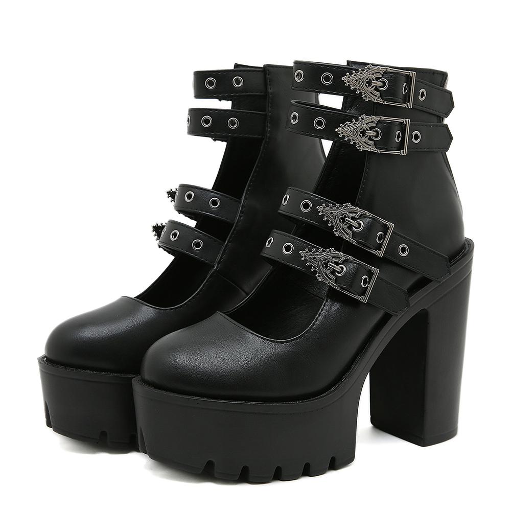 Gdgydh Готический стиль Женские туфли на каблуках для Хэллоуина Модные туфли-лодочки с пряжкой на ремешке Туфли Мэри Джейн на платформе Стильные туфли с молнией сзади — купить товар онлайн с бесплатной доставкой по всему миру!