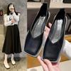 Туфли на плоской подошве, женские туфли на одинарной платформе с квадратным носком, простые темпераментные кожаные туфли, весна-осень, 4 цвета