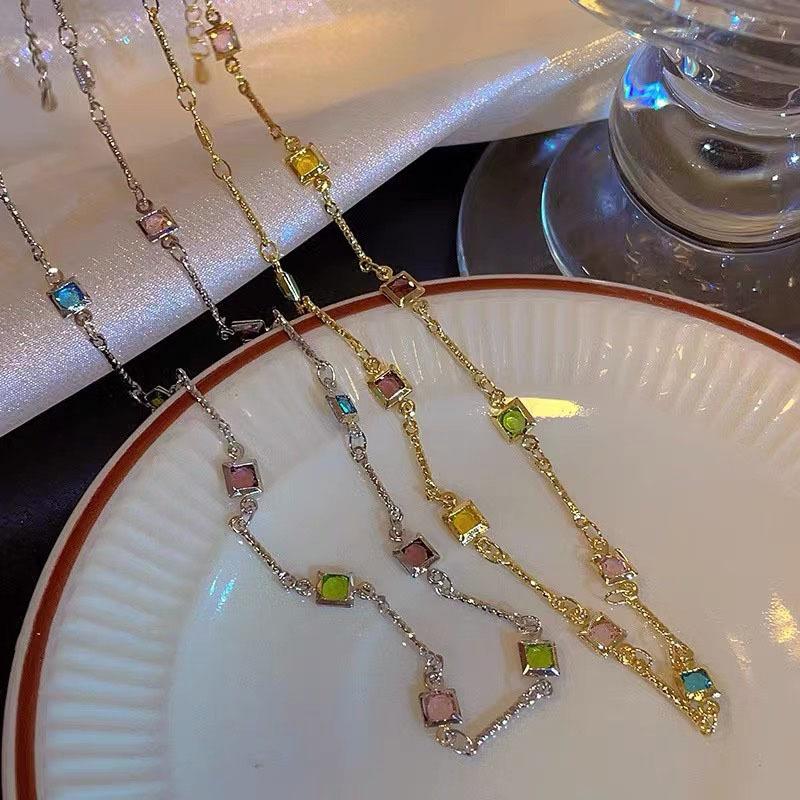 Красочное квадратное ожерелье со стразами, модное изысканное светлое роскошное циркониевое ожерелье на ключицу, женские свадебные украшения, подарки