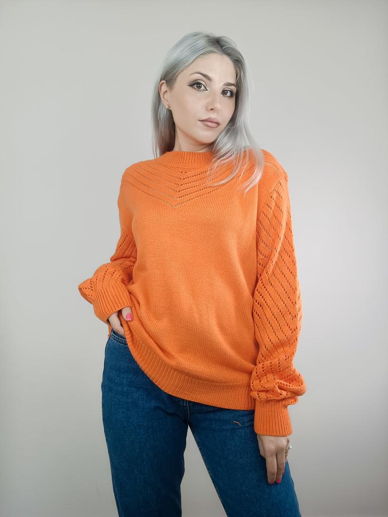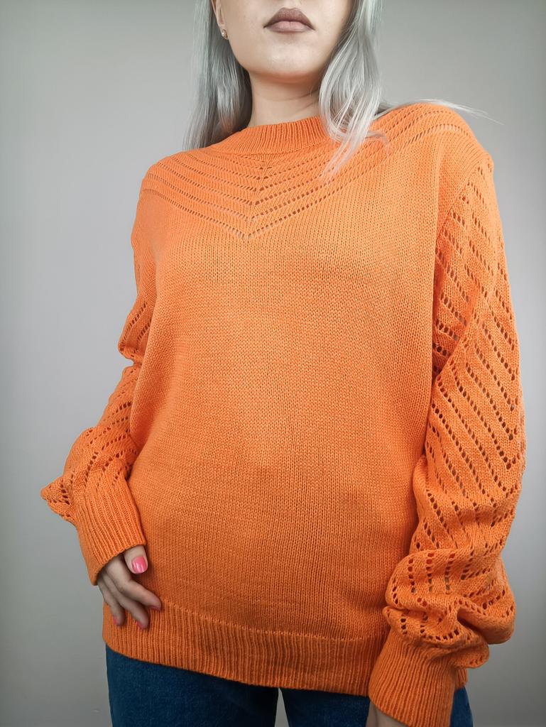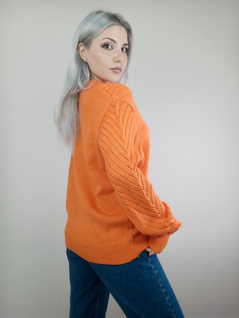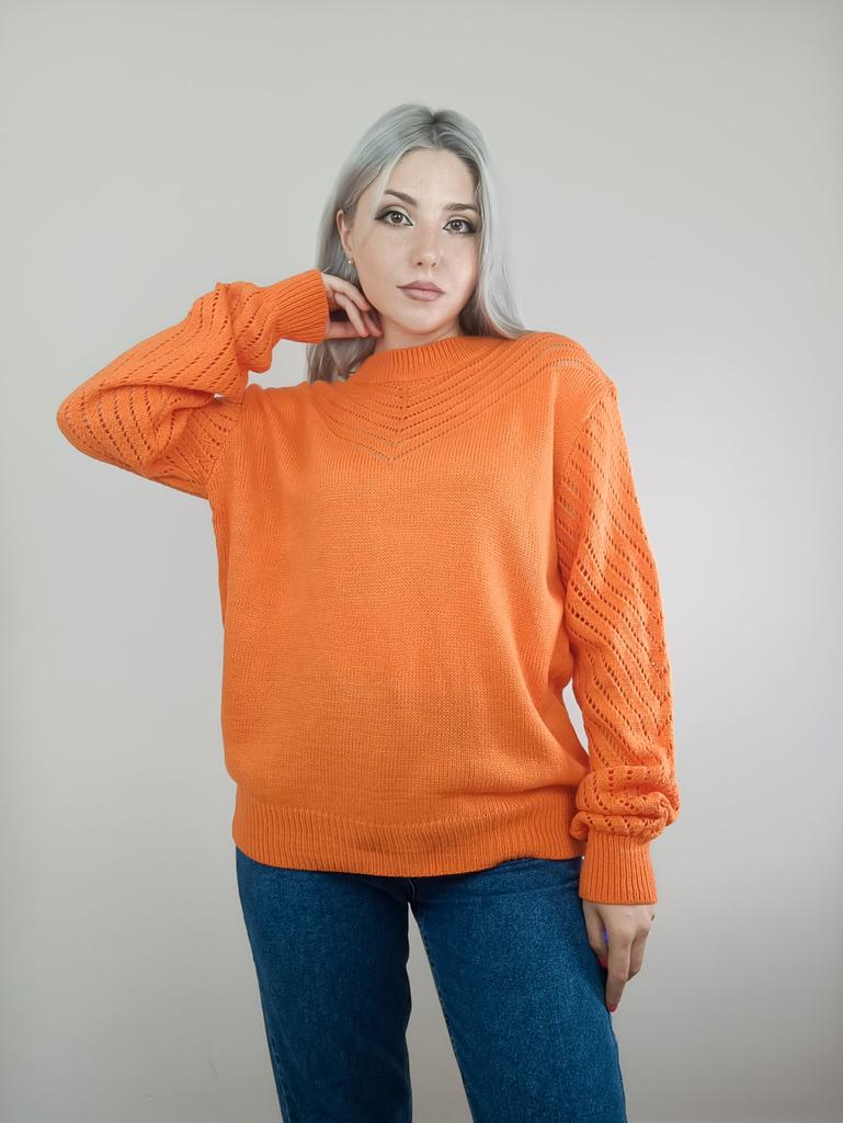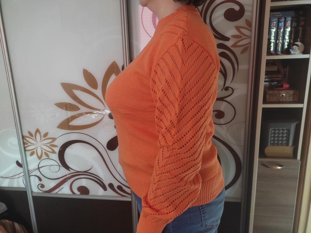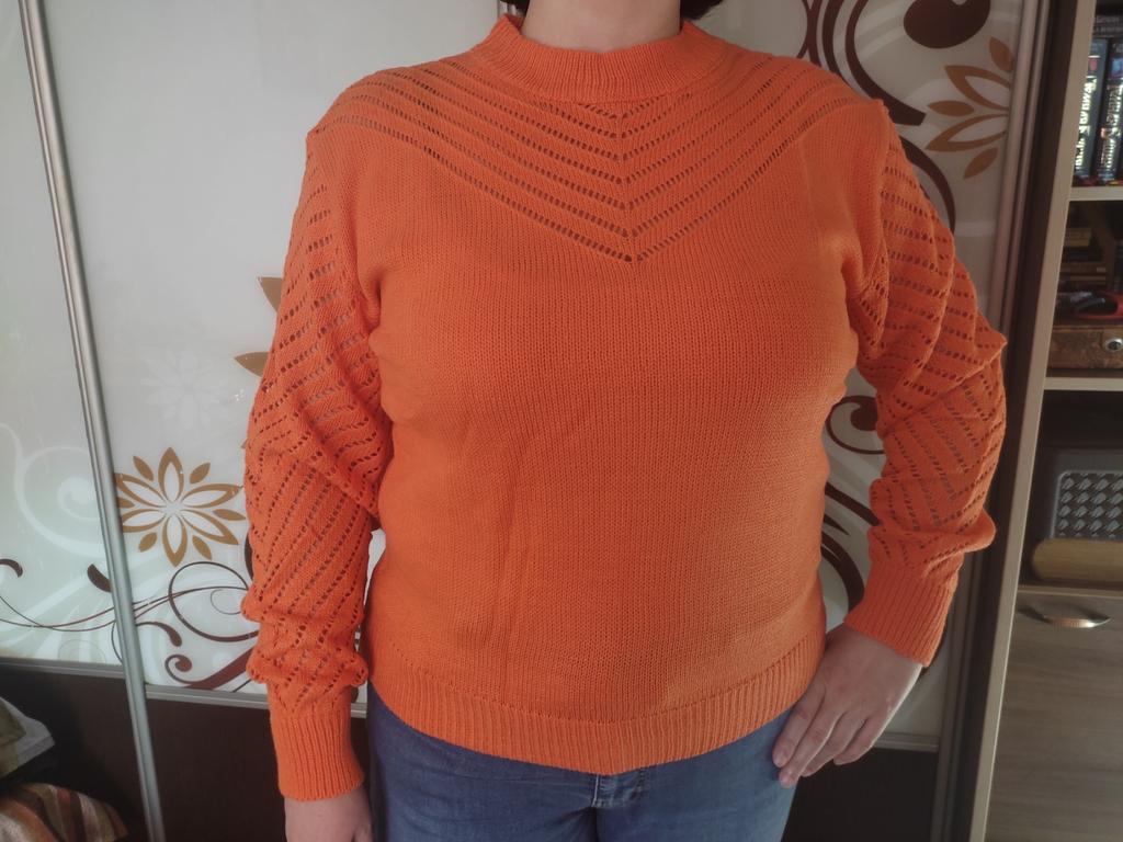 Свитер как раз. Мои параметры ОГ 115, ОТ 110, ОБ 120. Синтетика, акрил. Свитер тонкий, мягкий. Рукава длинные, это радует, так как руки у меня длинные. Запаха постороннего нет. Можно сразу одевать, только перед этим поутюжить. После двухдневной носки скажу, что эта нитка парит. Свитер для умеренного образа жизни.