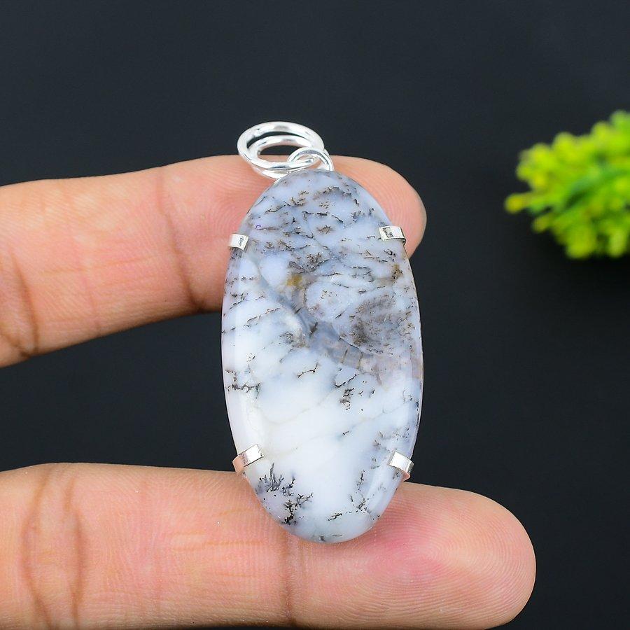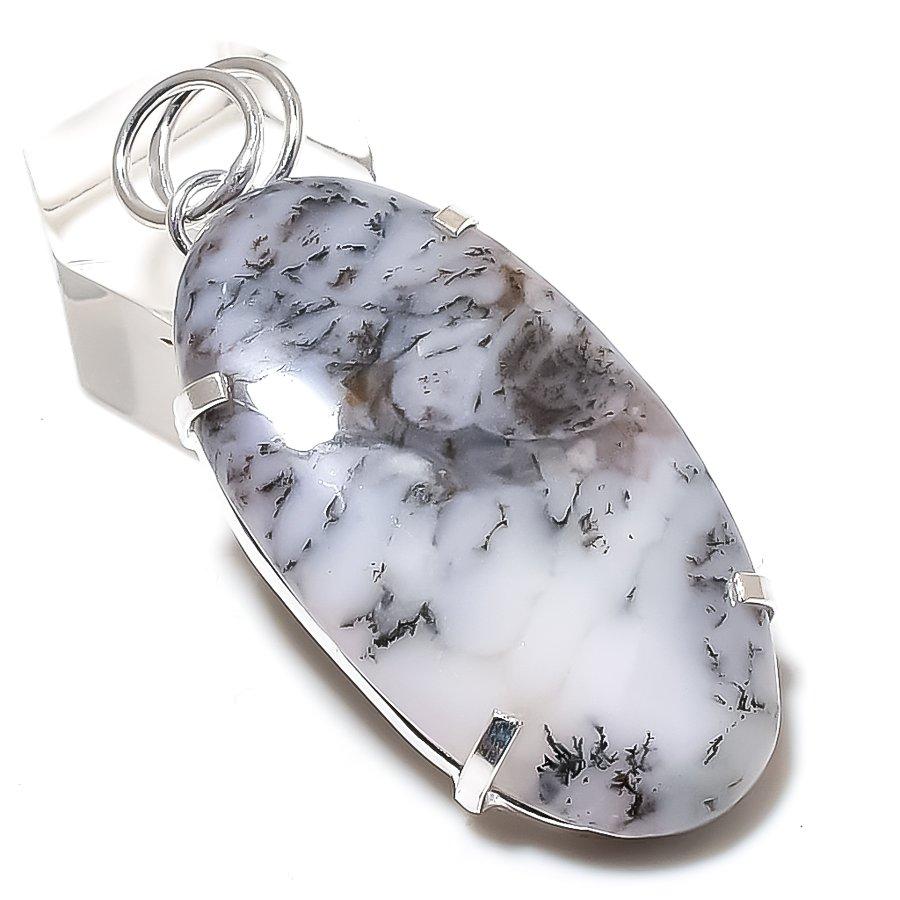 Подвеска из серебра 925 пробы с опалом и дендритом, ручная работа, 2,25 дюйма