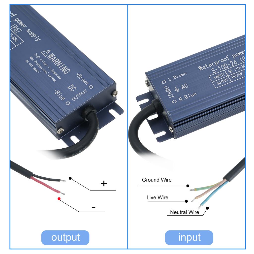 Водонепроницаемый и прочный: Этот наружный блок питания с классом защиты IP67 выдерживает воздействие погодных условий благодаря корпусу из алюминиевого сплава, что делает его идеальным для уличных светодиодных светильников, вывесок и многого другого.