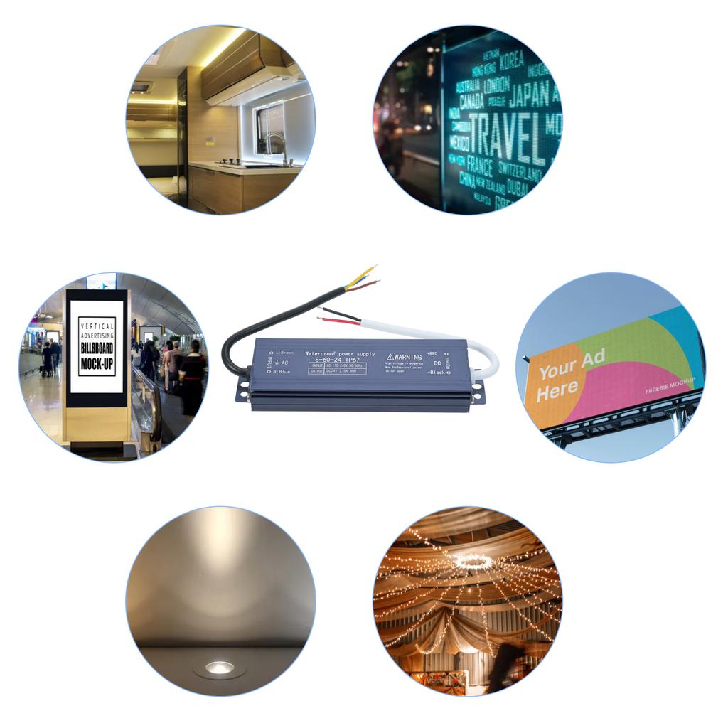 Широкие Приложения: Этот блок питания идеально подходит для различных видов наружного освещения, включая светодиодные светильники, рекламу, вывески, световые короба и световые полосы, и является универсальным решением для ваших потребностей в освещении.