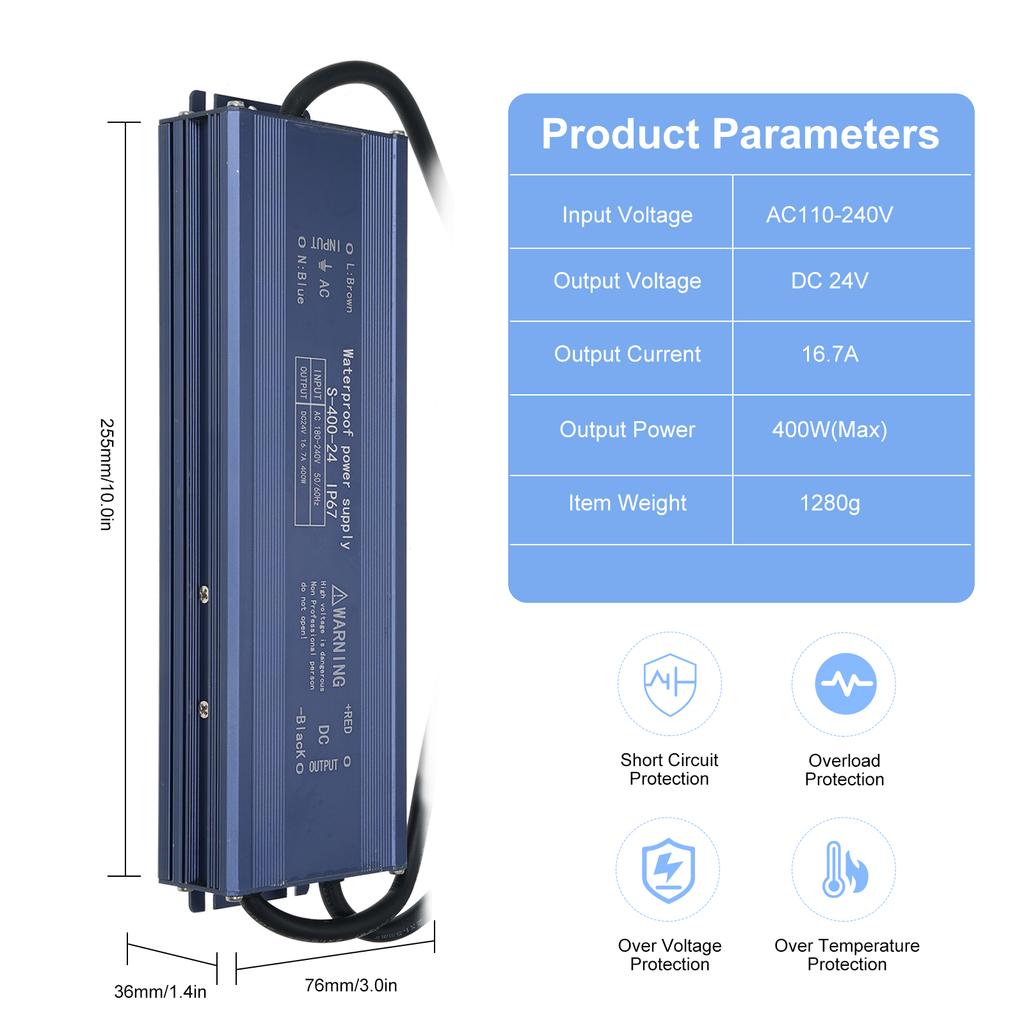 Надежная выходная мощность: Благодаря входному диапазону переменного тока 180–240 В и выходной мощности 24 В 400 Вт этот блок питания обеспечивает стабильное и бесперебойное питание ваших осветительных приборов.