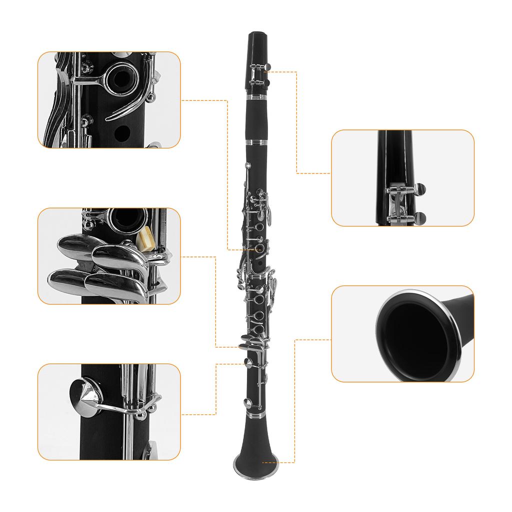 Кларнет ABS Bb Бинокулярный кларнет с 10 язычками Ткань для чистки Перчатки Кронштейн отвертки Сумочка