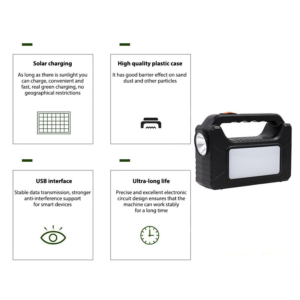 [Многофункциональный и портативный]: Этот фонарик на солнечной батарее — универсальный и компактный системный источник питания, который может сопровождать вас в сложных экстремальных условиях.. Идеально подходит для случаев внезапного отключения электроэнергии, аварийного освещения, поломок автомобилей, ремонтного освещения, освещения кемпинга на открытом воздухе, ночных прогулок и ежедневного освещения.