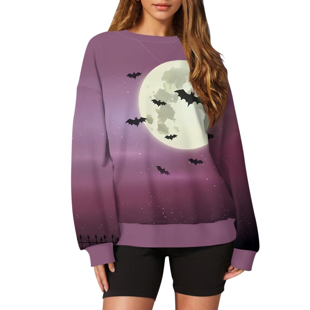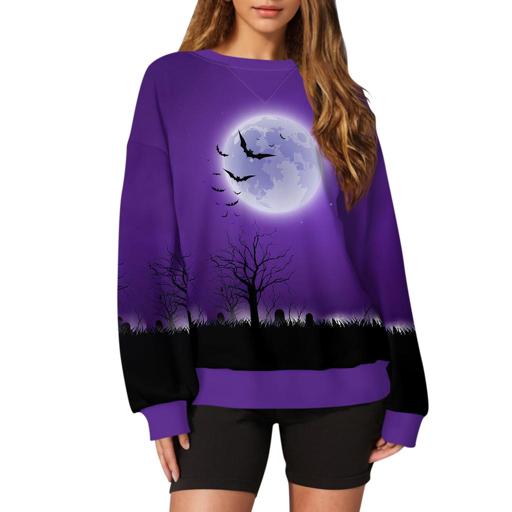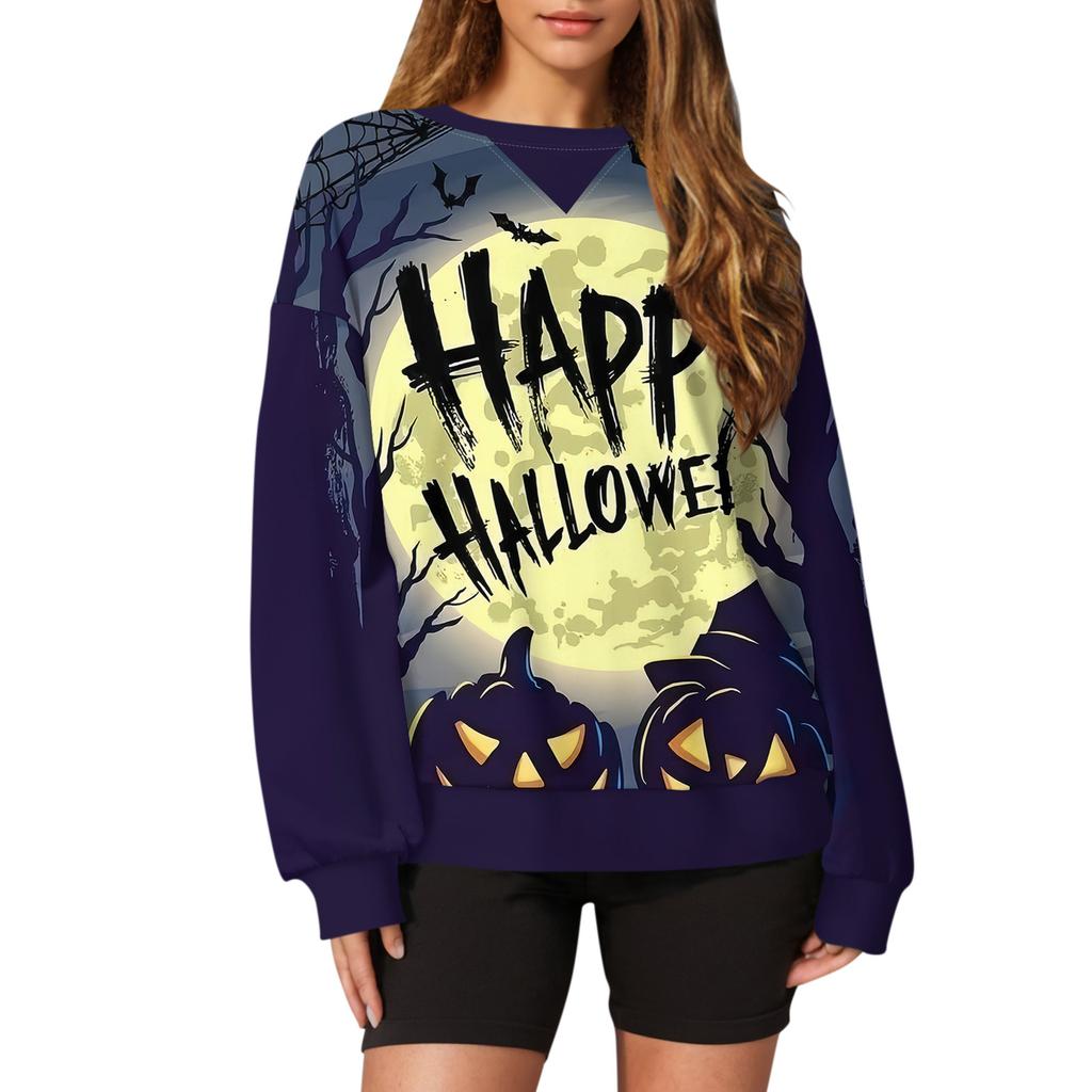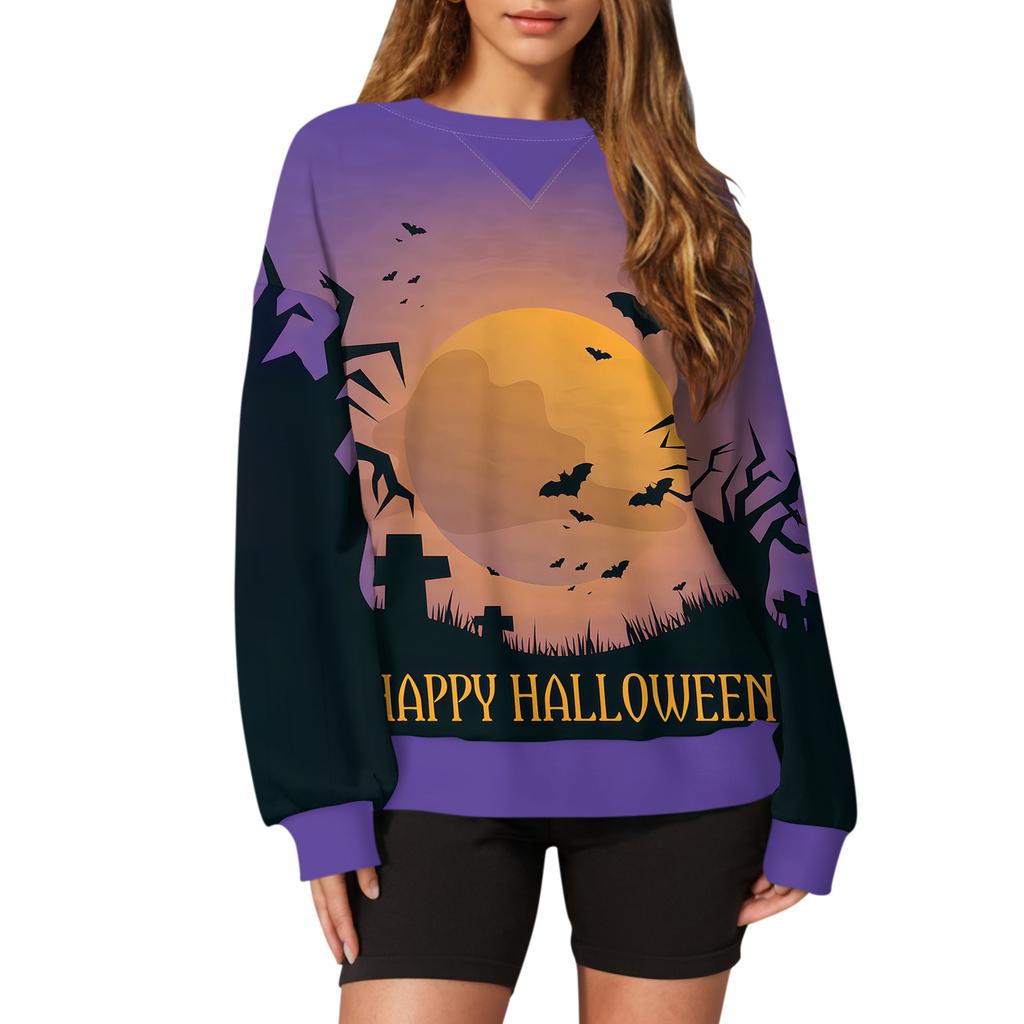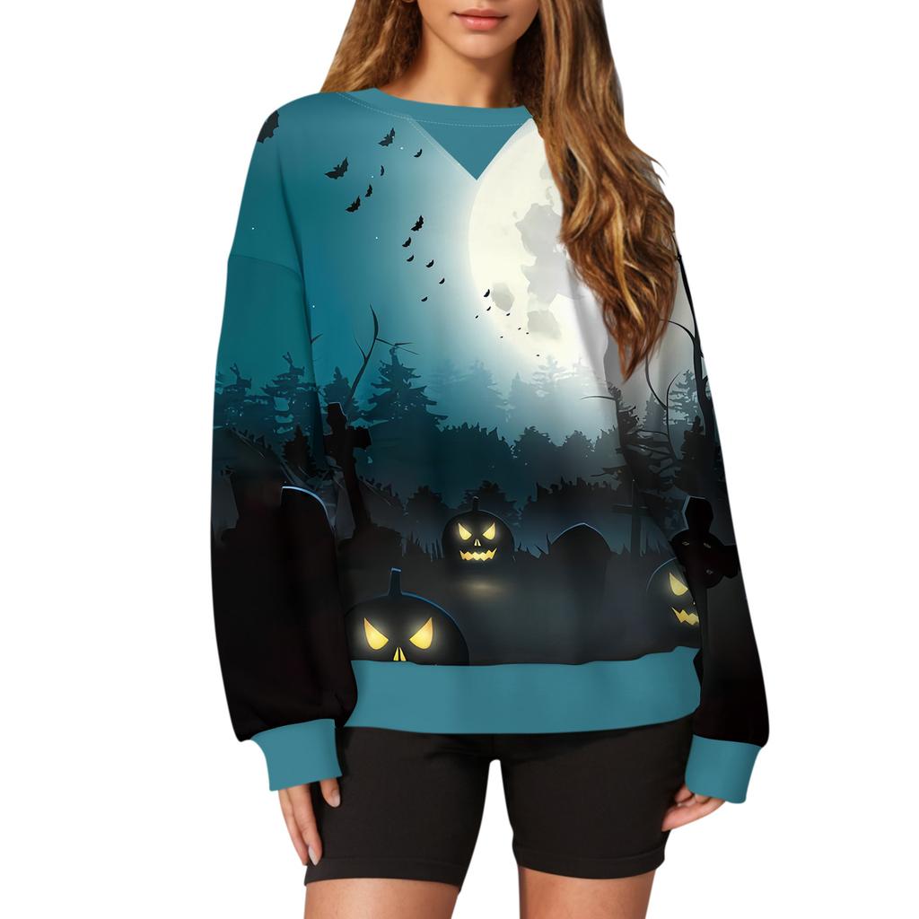 Женский повседневный пуловер с принтом на Хэллоуин, рубашка с длинным рукавом, толстовка большого размера