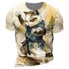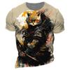 Футболка с принтом японского кота-самурая, мужская футболка с рисунком аниме