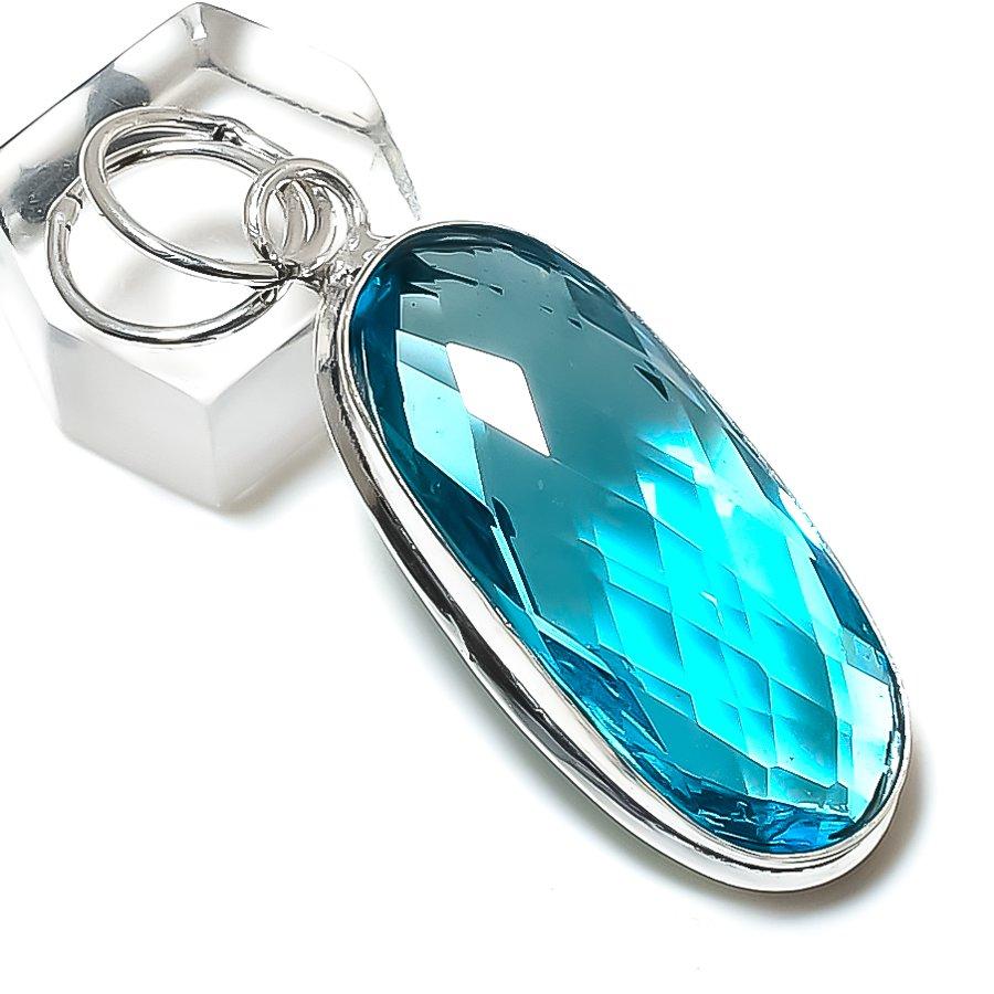 Подвеска из серебра 925 пробы с голубым топазом, ручная работа, 2,17 дюйма