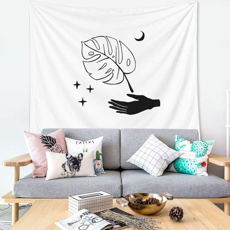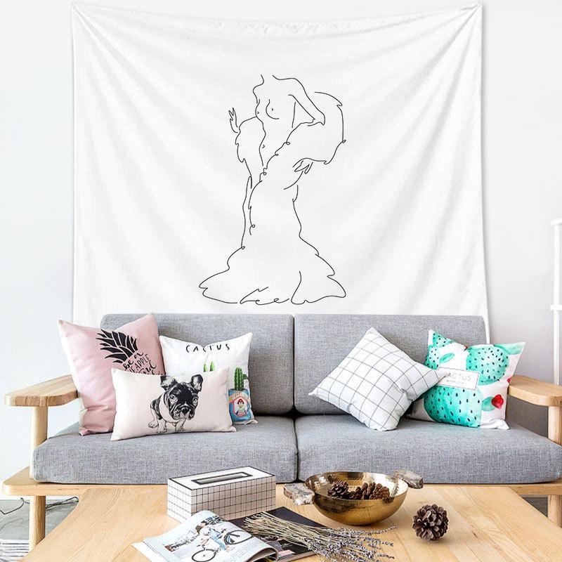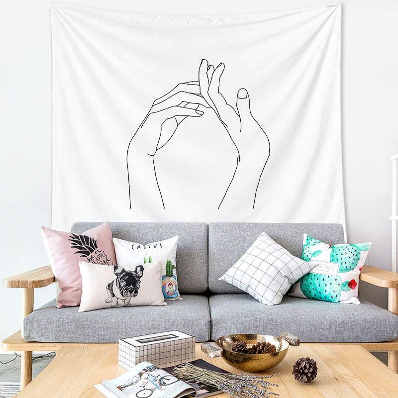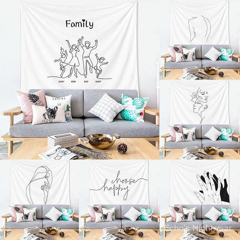 Гобелен Настенный Простой Арт Черно-белые Линии Фон Декоративный для Спальни