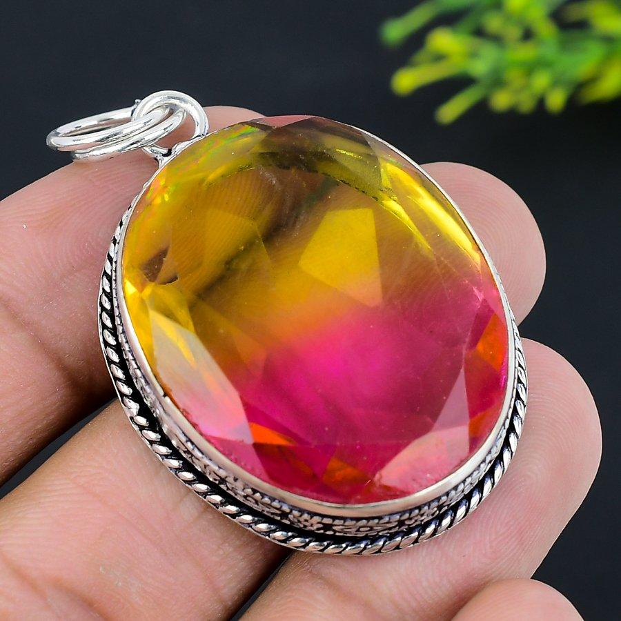 Подвеска из стерлингового серебра 925 пробы с двухцветным турмалином и драгоценным камнем 2,13 дюйма