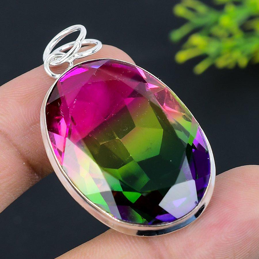 Подвеска из стерлингового серебра 925 пробы с двухцветным турмалином и драгоценным камнем 2,05 дюйма