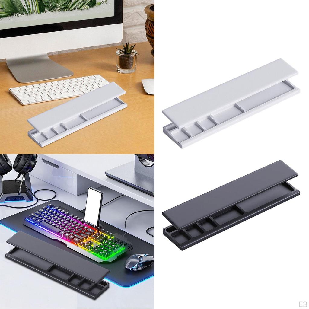 - 【Многофункциональный】: Защита запястья клавиатуры не только обеспечивает комфорт вашим запястьям во время долгих часов набора текста, но также служит ящиком для хранения, позволяющим поддерживать порядок на рабочем столе.