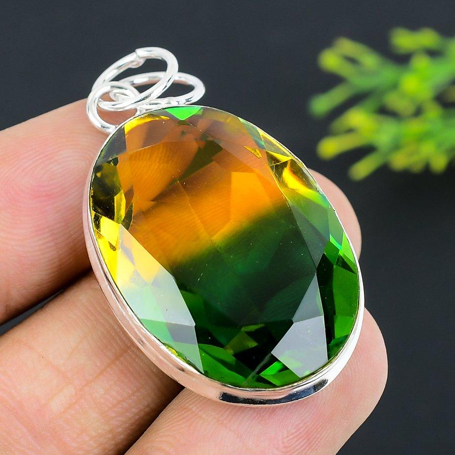 Подвеска из стерлингового серебра 925 пробы с двухцветным турмалином и драгоценным камнем 2,05 дюйма