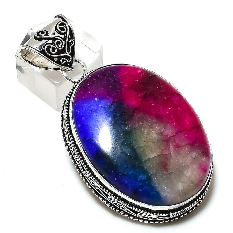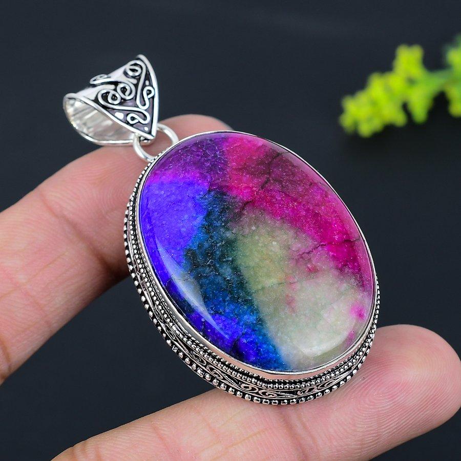 Подвеска ручной работы из стерлингового серебра 925 пробы с радужным солнечным кварцем 2,36 дюйма