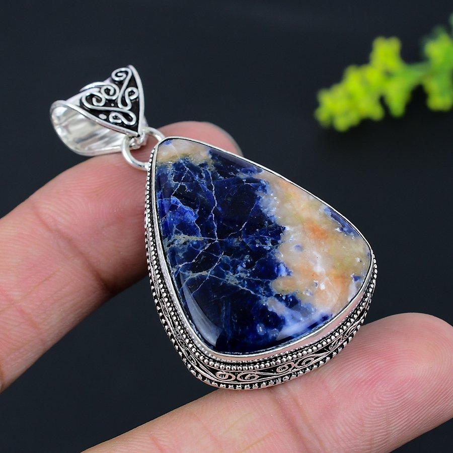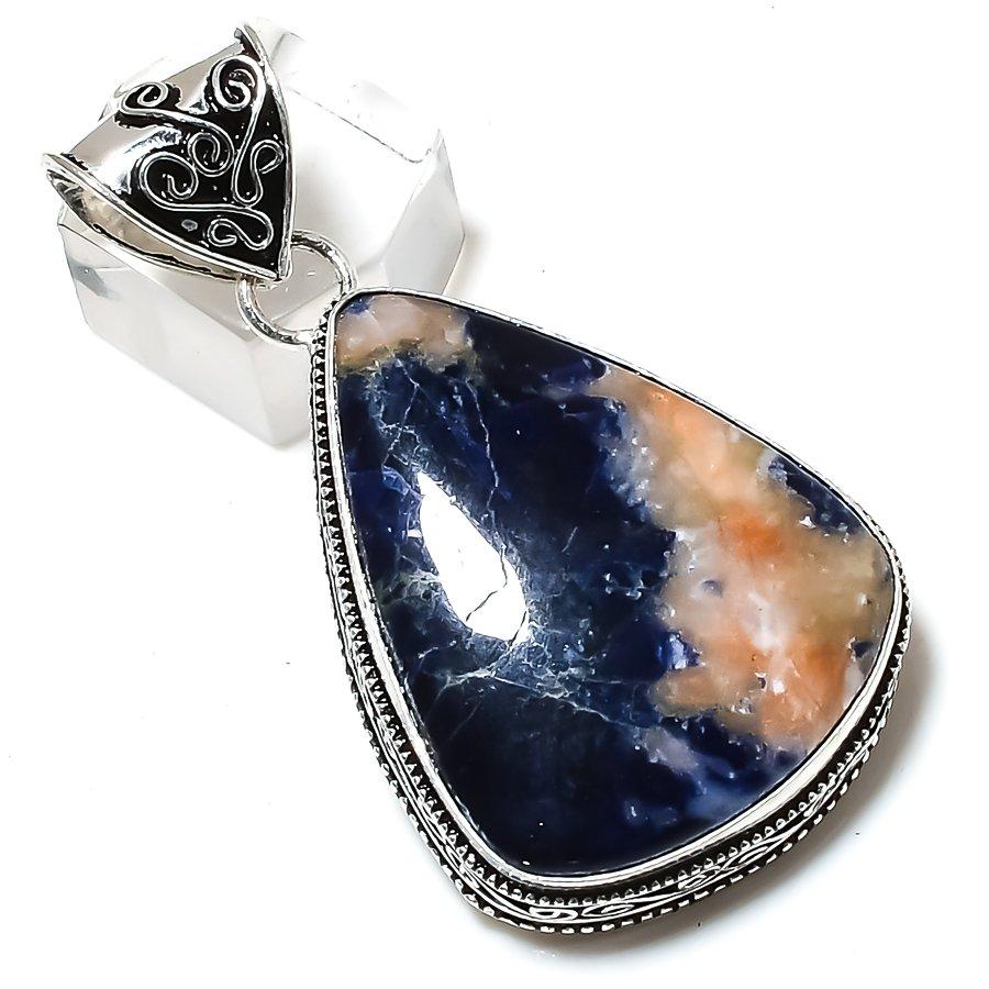 Подвеска из стерлингового серебра 925 пробы с драгоценным камнем содалитом 2,21 дюйма