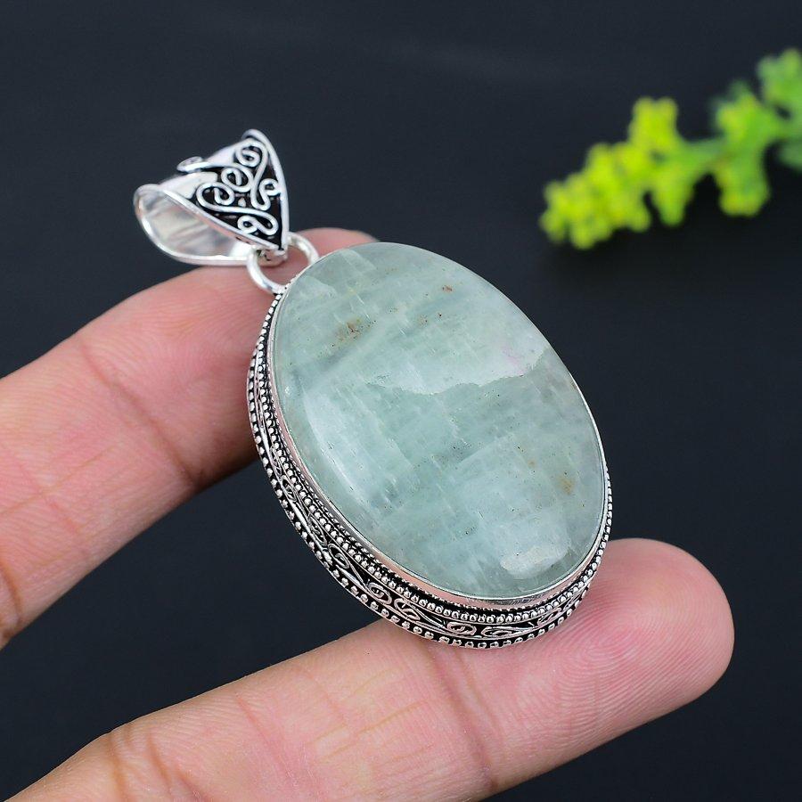 Подвеска из серебра 925 пробы с драгоценным камнем аквамарин, ручная работа, 2,21 дюйма