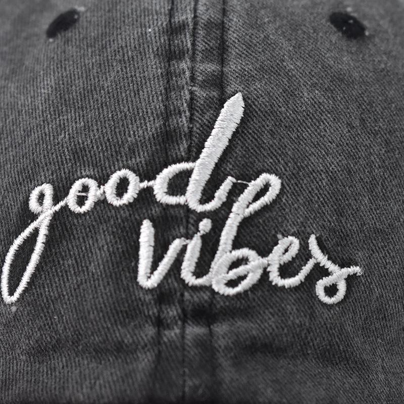 Стиранная хлопковая новая бейсболка с вышитыми буквами и надписью Good Vibes, старая стиранная кепка