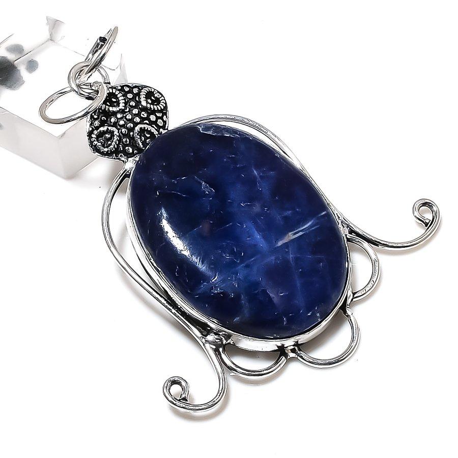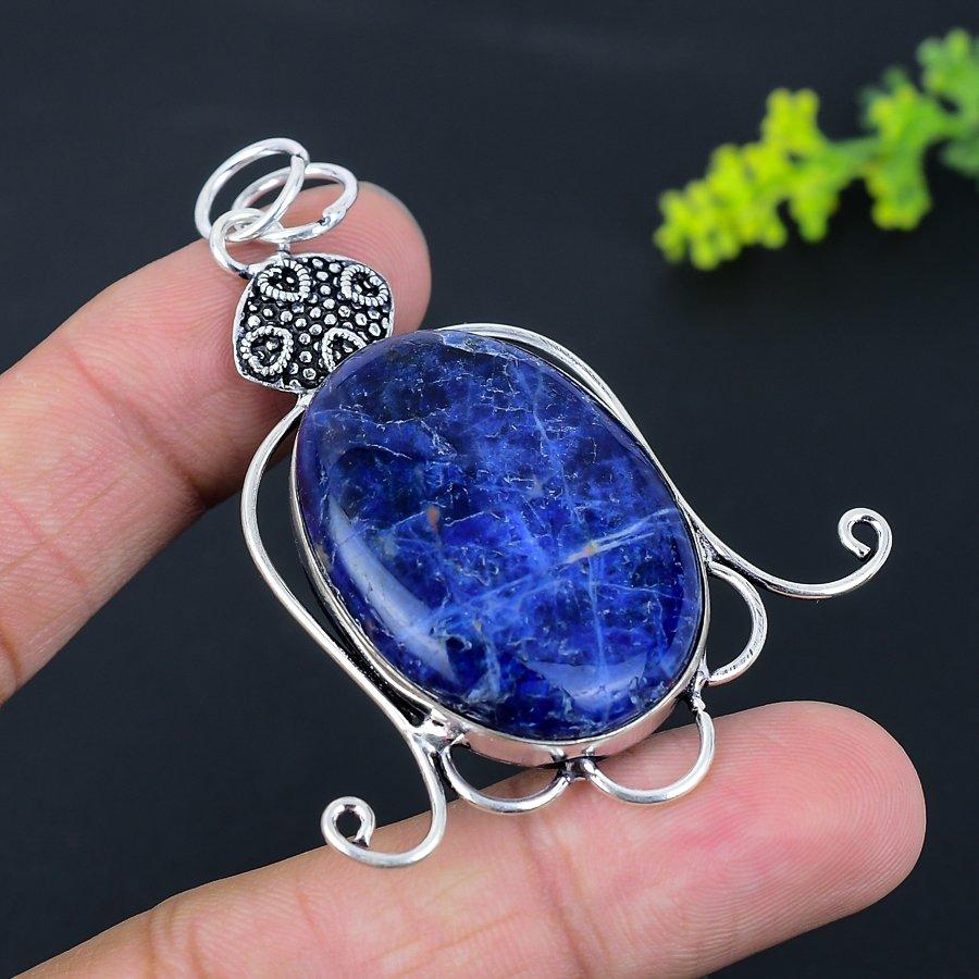 Подвеска из серебра 925 пробы с драгоценным камнем содалит, ручная работа, 2,76 дюйма