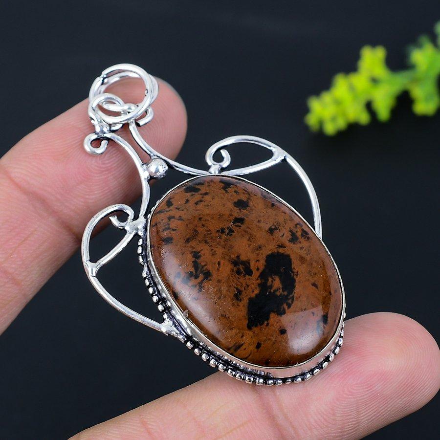 Махагоновый обсидиан Драгоценный камень Ручная работа Серебро 925 пробы Подвеска 2,60" P4d84