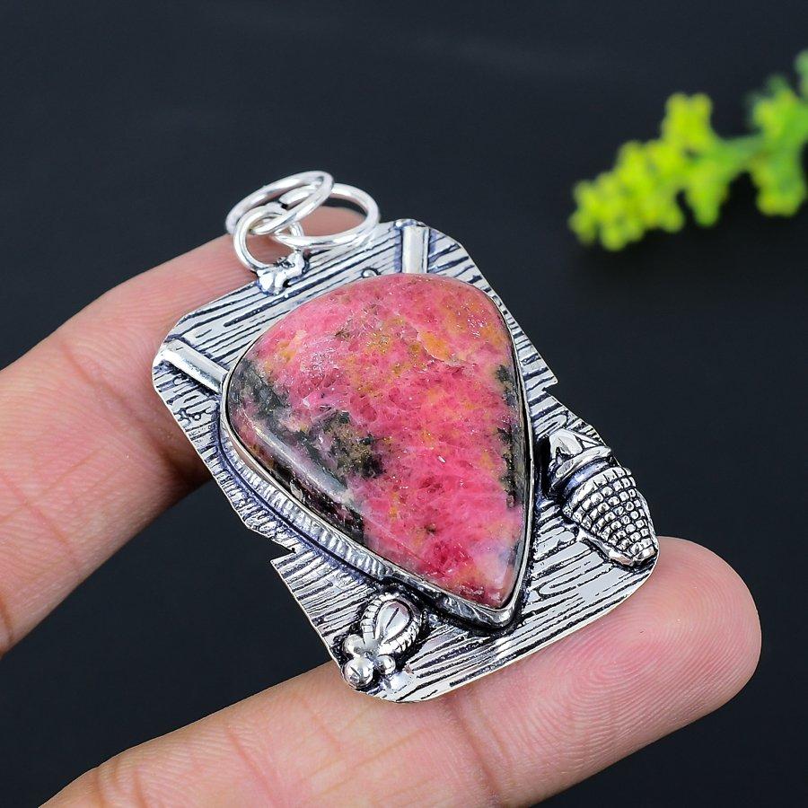 Подвеска из серебра 925 пробы с драгоценным камнем родонит, ручная работа, 2,29 дюйма