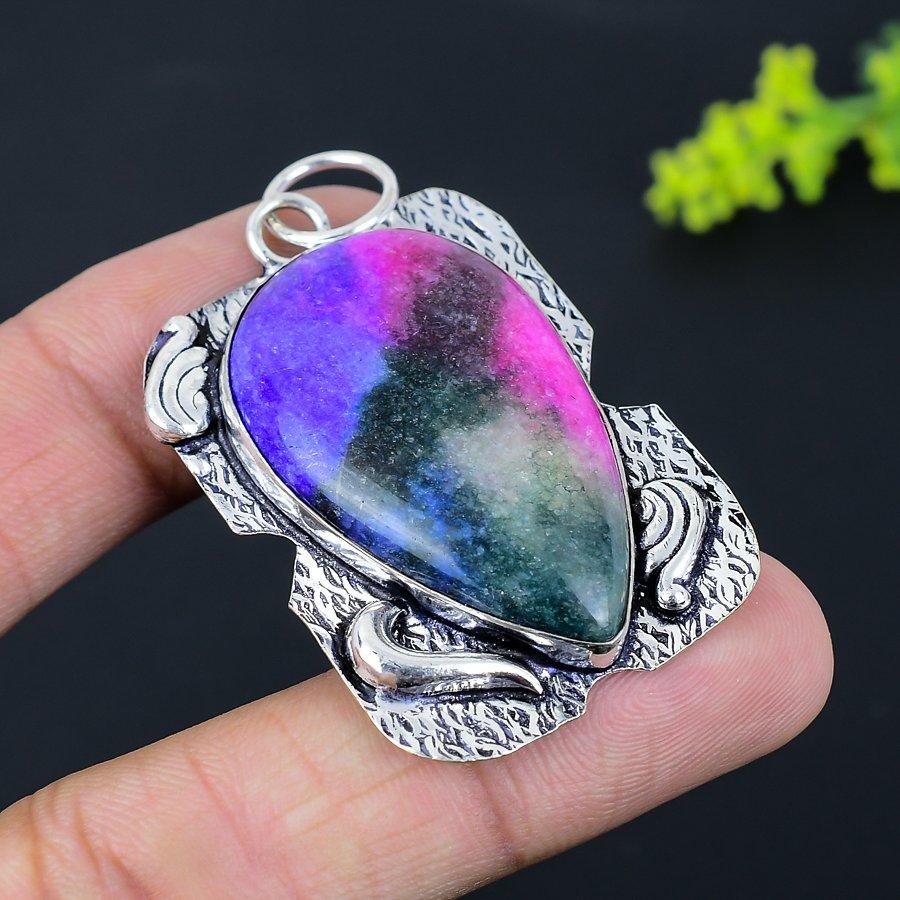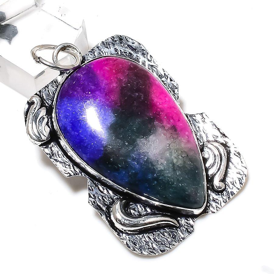 Подвеска из серебра 925 пробы с радужным солнечным кварцем, ручная работа, 2,29 дюйма