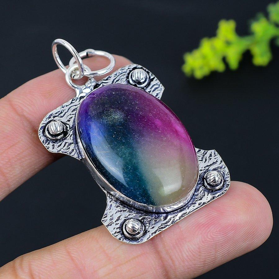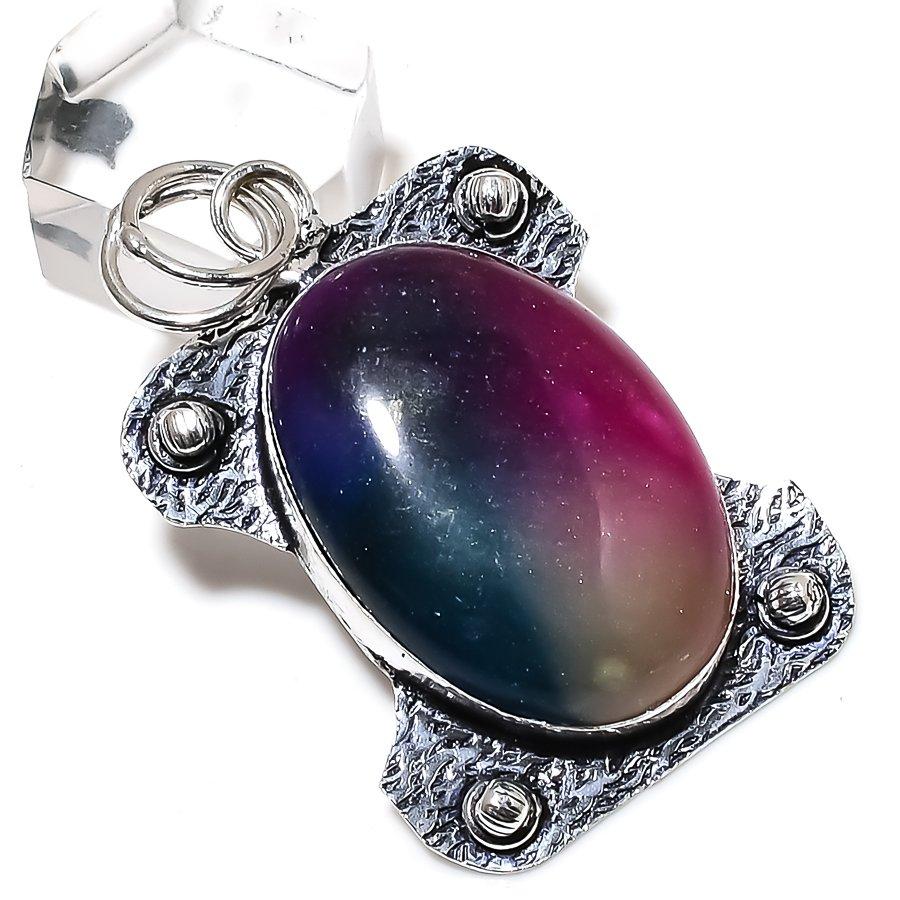 Подвеска ручной работы из стерлингового серебра 925 пробы с радужным солнечным кварцем 2,17 дюйма