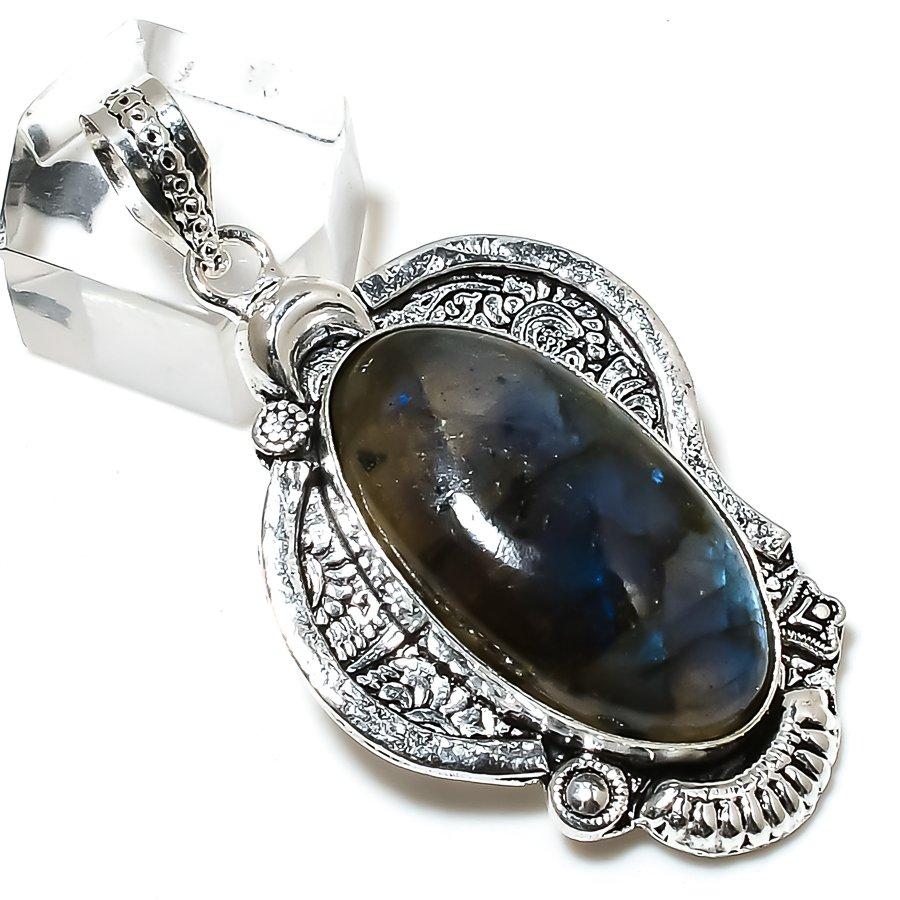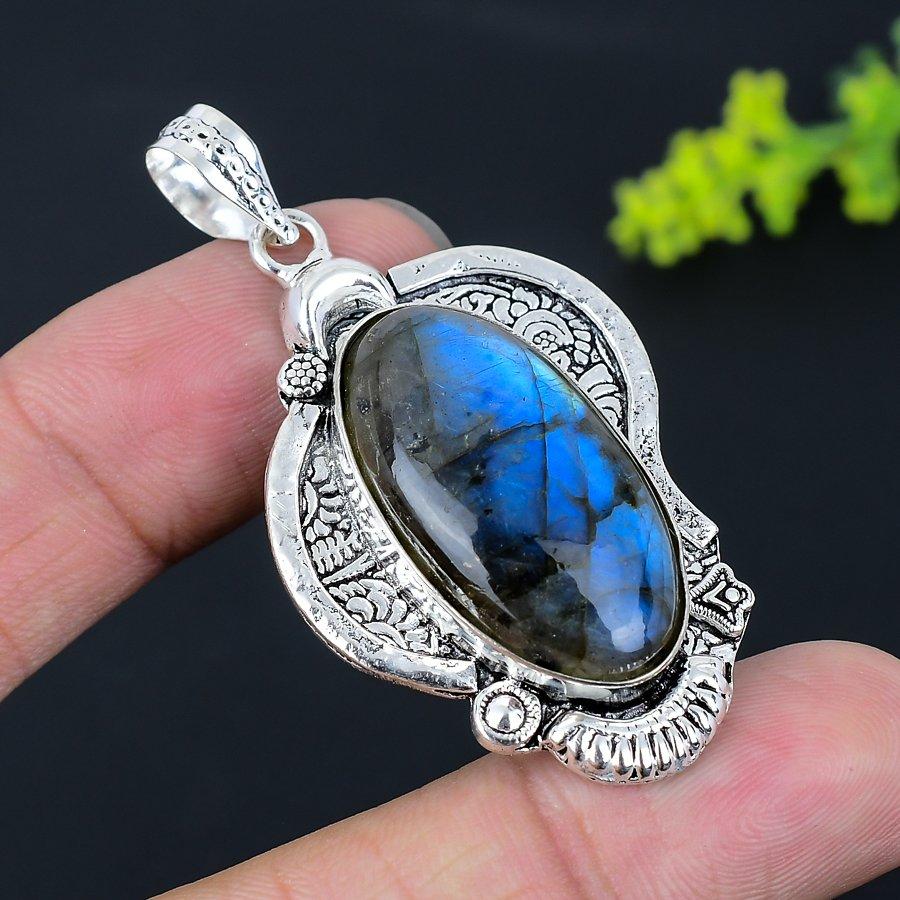 Labradorite Gemstone Handmade 925 Sterling Silver Jewelry Pendant 2.25" U4K03