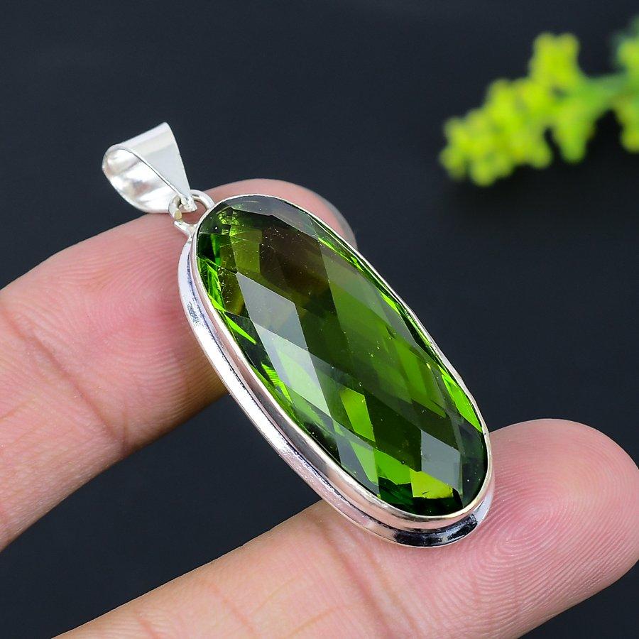 Хризолит Драгоценный камень Ручная работа 925 Стерлинговое серебро Подарок Ювелирное изделие Подвеска 1,97"