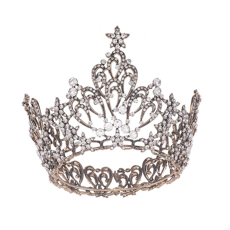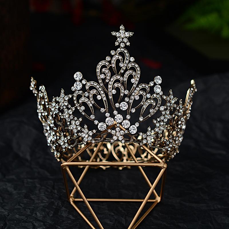 Европейское барокко, ретро-сплав, тиара со стразами, свадебная круглая корона, дворцовая корона, свадебные украшения