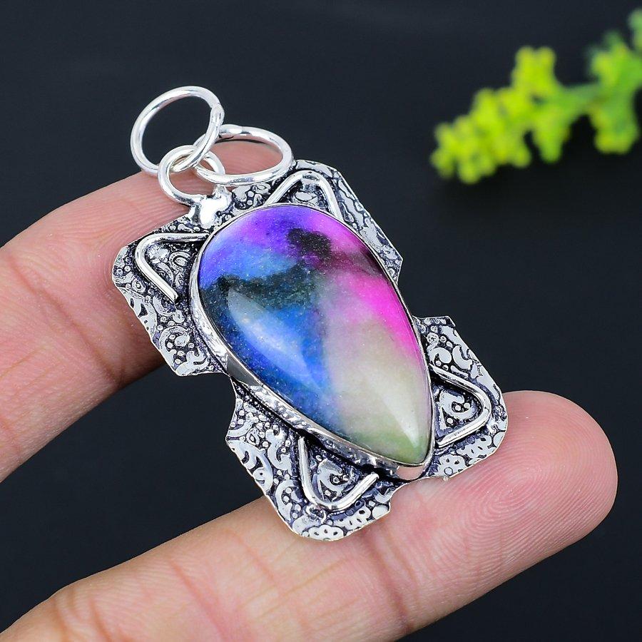 Rainbow Solar Quartz Gemstone Handmade 925 Sterling Silver Pendant 2.13" k6E81