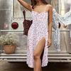 Сексуальное модное платье с цветочным принтом и рюшами на шнуровке, женское платье с открытой лямкой на шее