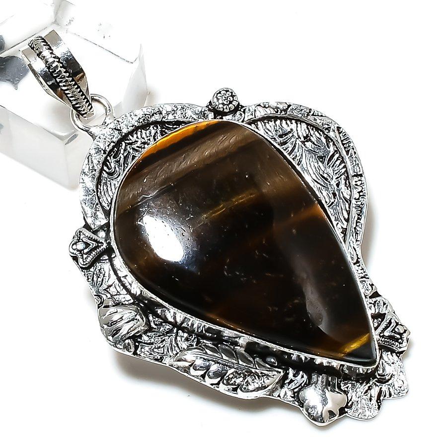 Tiger Eye Gemstone Handmade 925 Sterling Silver Gift Jewelry Pendant 2.48" r7W97