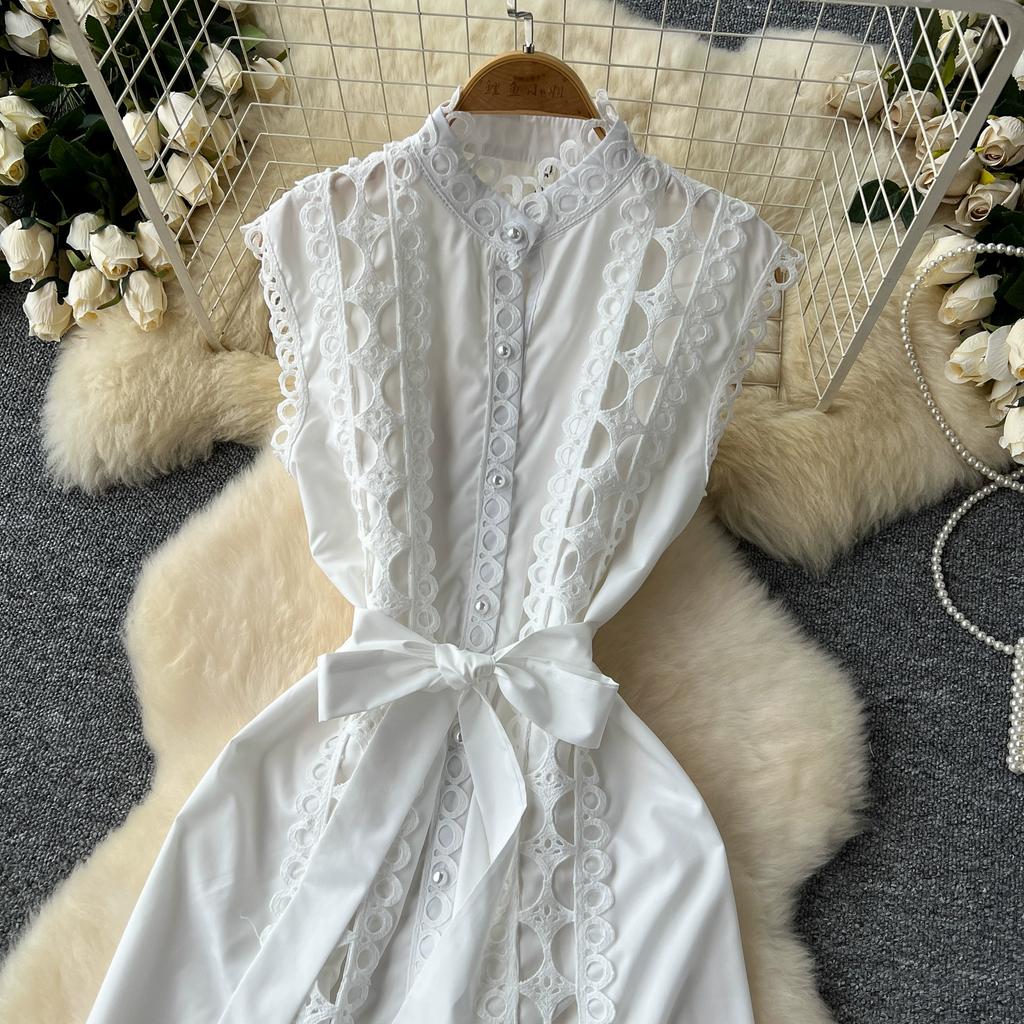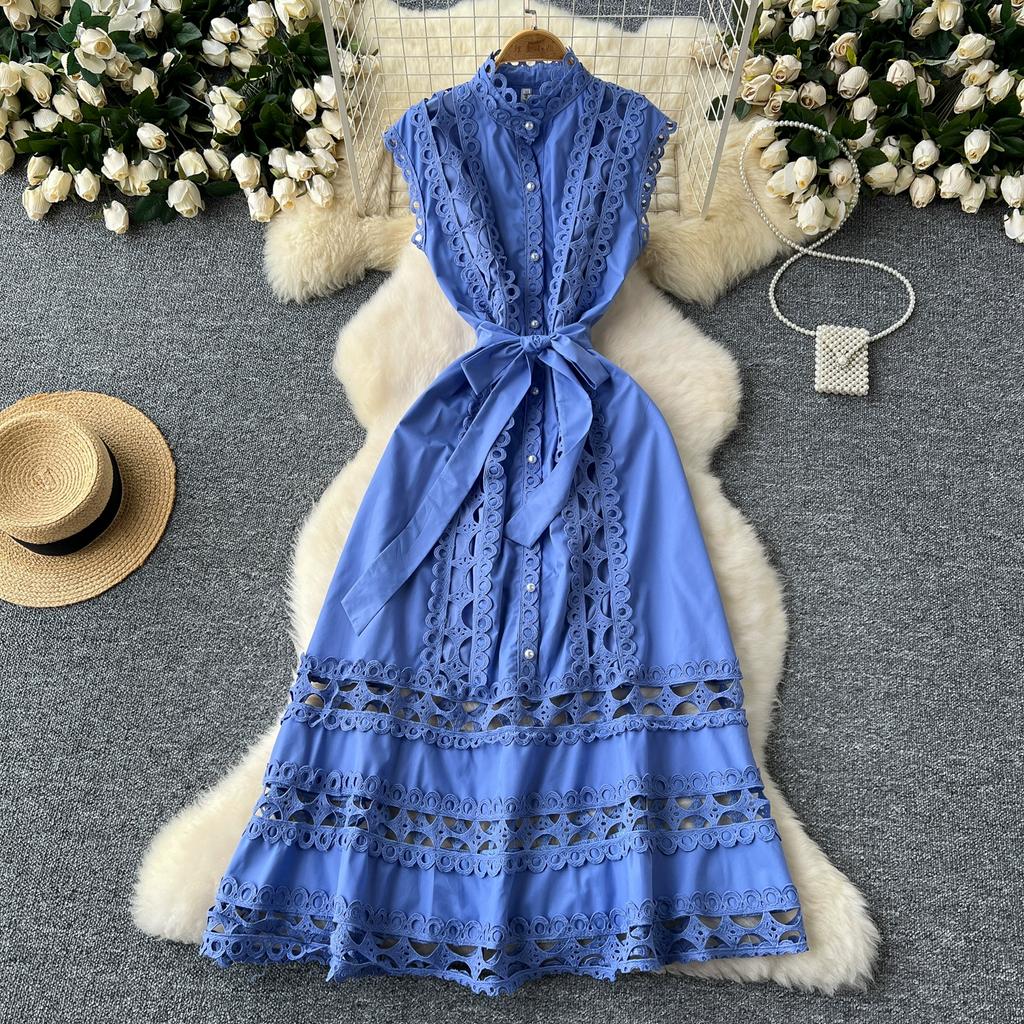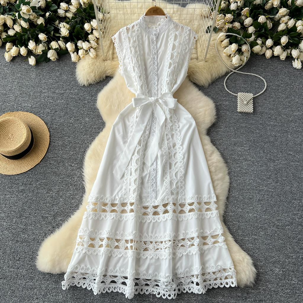 Летнее элегантное платье-стойка с кружевной вышивкой и воротником-стойкой, женское платье без рукавов для вечеринок