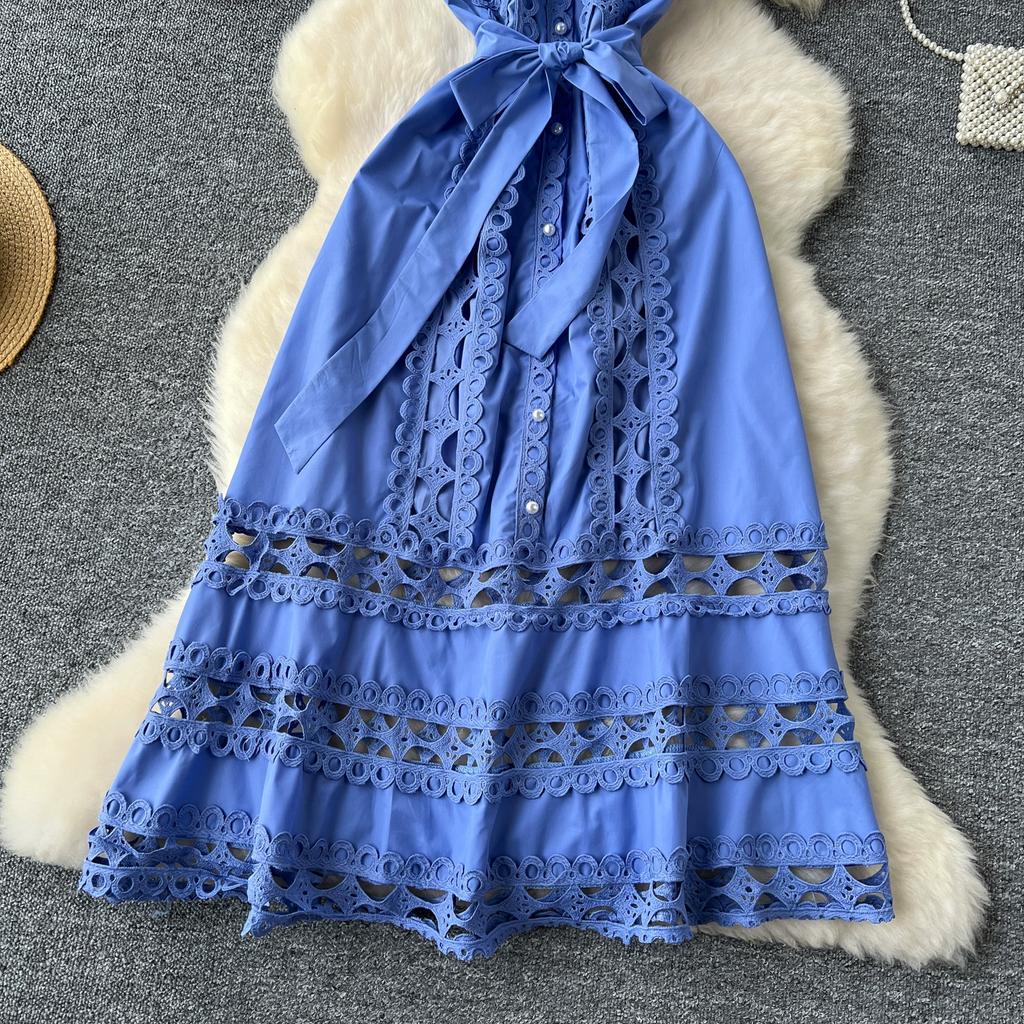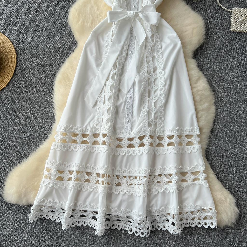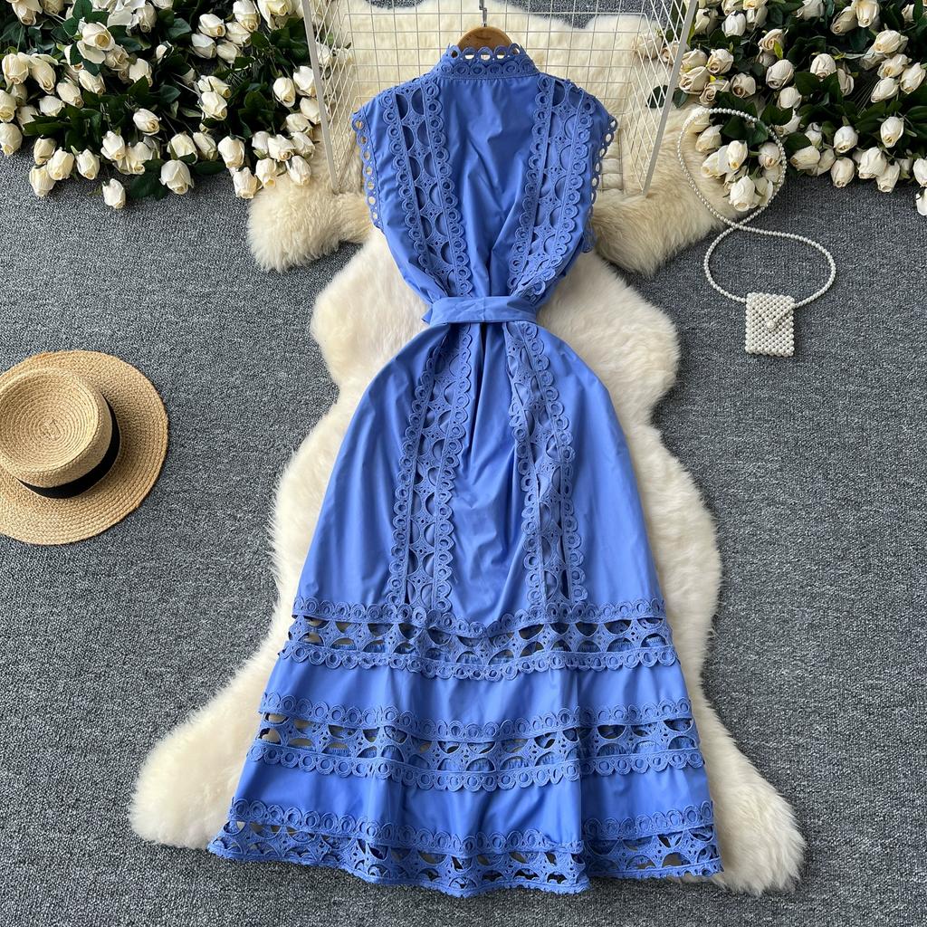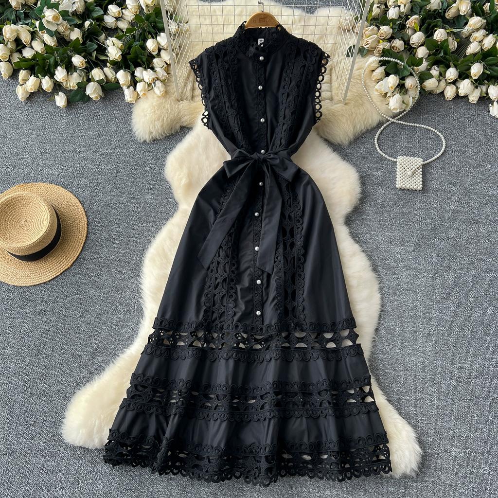 Летнее элегантное платье-стойка с кружевной вышивкой и воротником-стойкой, женское платье без рукавов для вечеринок