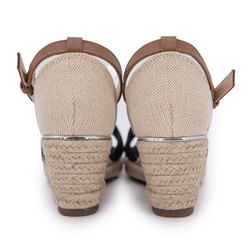 Женские бежевые и темно-синие босоножки на танкетке TOM TAILOR
