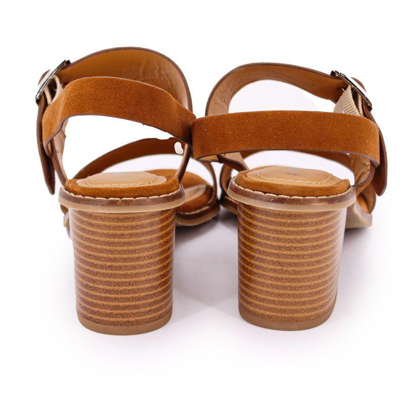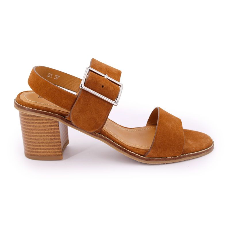 Сандалии из коньячной замши с пряжкой на щиколотке, каблук 6,5 см Женское PIERRE CARDIN