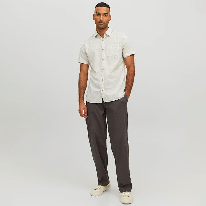 Мужская хлопковая рубашка в полоску с короткими рукавами JACK & JONES