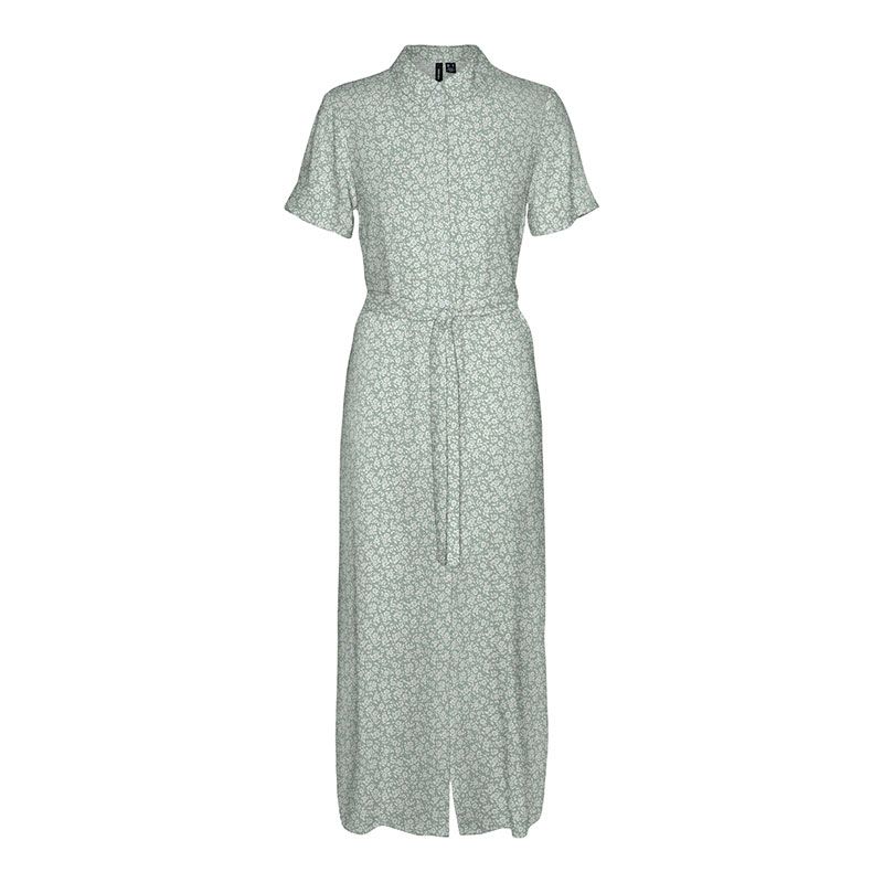 Зеленое длинное платье с короткими рукавами и мелкими цветочками Женский VERO MODA — купить товар онлайн с бесплатной доставкой по всему миру!