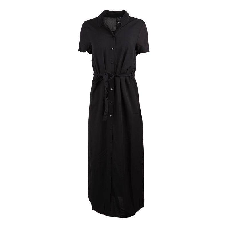 Черное длинное платье-рубашка с поясом и разрезом спереди Женский VERO MODA — купить товар онлайн с бесплатной доставкой до всему миру!