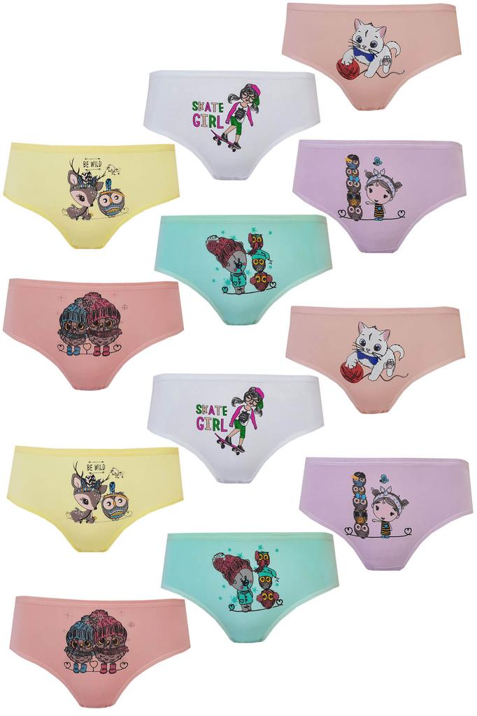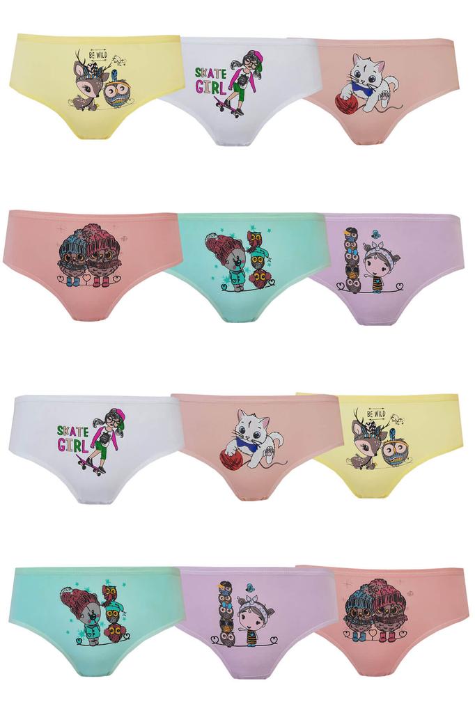 Комплект из 12 трусиков для девочек, нижнее белье без трусов с ярким принтом