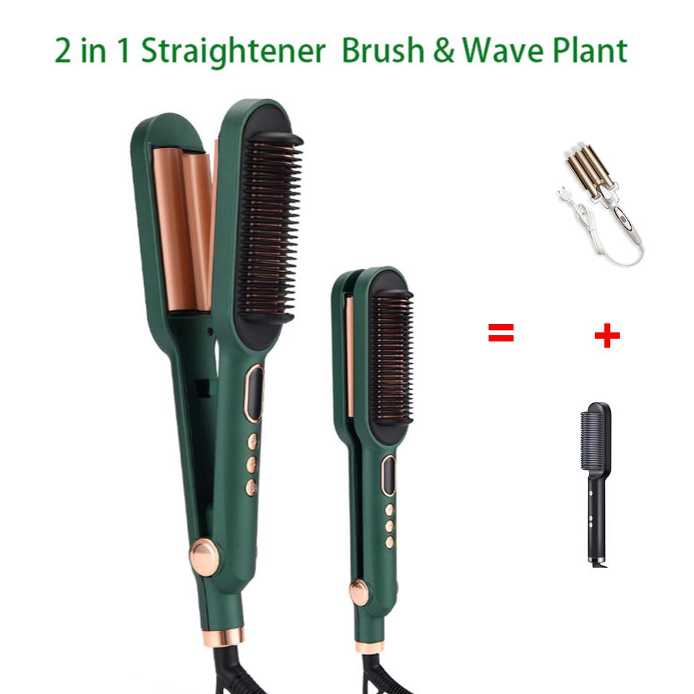 2 в 1 выпрямитель для волос щетка для завивки волос керамические отрицательные ионы для завивки волос бигуди инструменты для укладки волос с ЖК-дисплеем