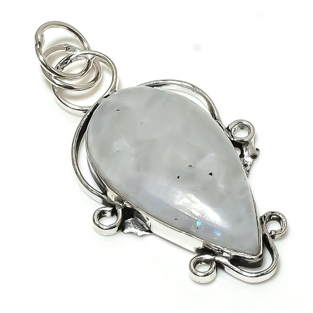 Ювелирный кулон из стерлингового серебра 925 пробы с радужным лунным камнем 2,36 дюйма